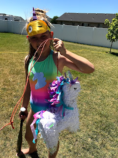 This year for Molly's birthday she wanted unicorns so we made a cute invitation for her to invite her friends over for a water party. We gave them treat bags with fingernail polish so they sat and painted nails and we got a cute unicorn pinata which was junk and didn't even last through everybody hitting it once so we ripped it open and scattered candy for everyone.